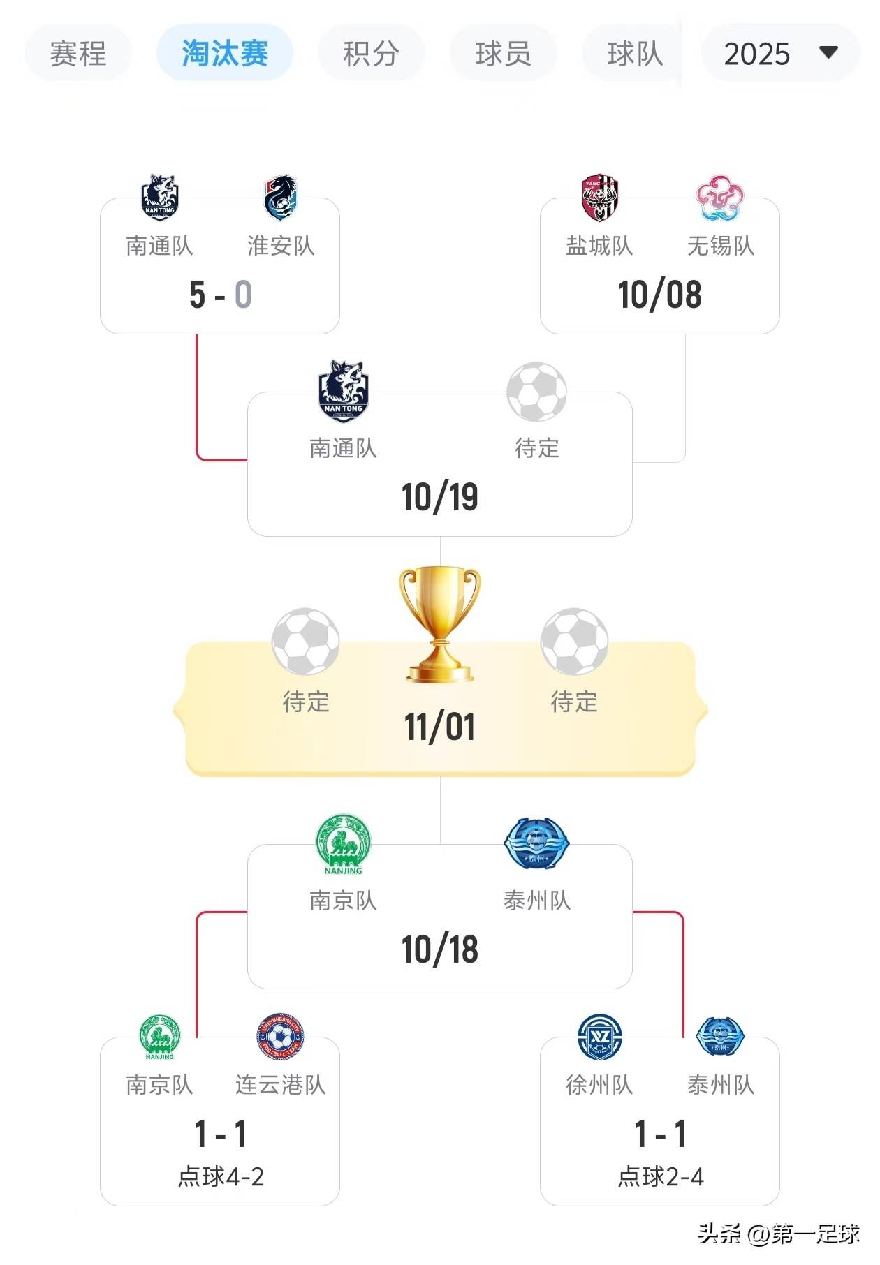10月6日的比赛则发生了较大的变化。常规赛第一名的南通队主场对阵排名第八的淮安队。虽然南通队曾在前十轮保持全胜,后来却在倒数第二轮与淮安队和无锡队分别战成1比1平局,断送了连胜纪录。然而,这并未影响南通队的强大实力,反而让淮安队的球迷产生了些许期待。但比赛的结果却依旧非常残酷。南通队轻松以5比0战胜了淮安队,毫不费力地进入了四强。南通队的实力,无论是依托中乙球队海门珂缔缘队的球员,还是其整体的表现,都是苏超联赛中最为强大的。