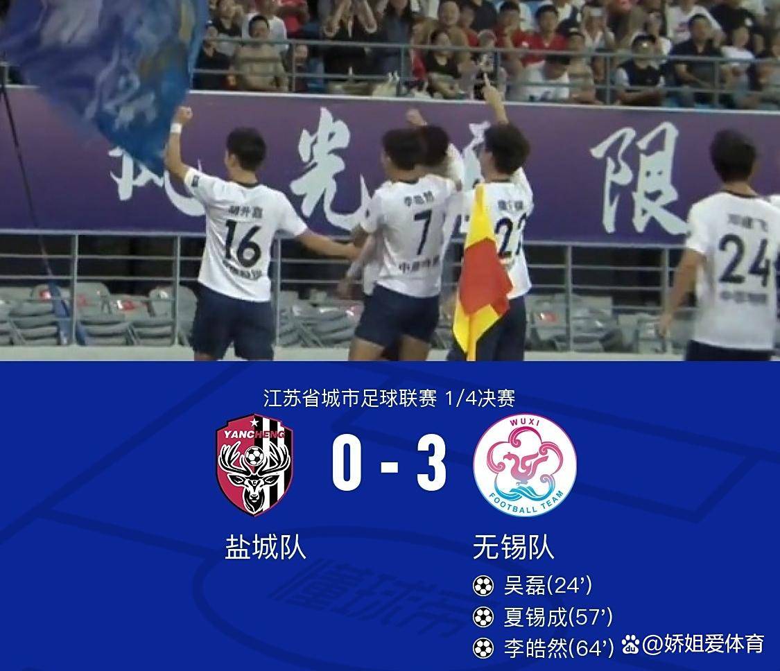 最后一场1/4决赛,无锡队客场挑战盐城队。上半场,双方势均力敌,场面胶着。无锡队凭借对手的乌龙助攻,幸运地取得领先。下半场,无锡队完全掌控了比赛节奏,夏锡成和李皓然在7分钟内连入两球,彻底锁定胜局。